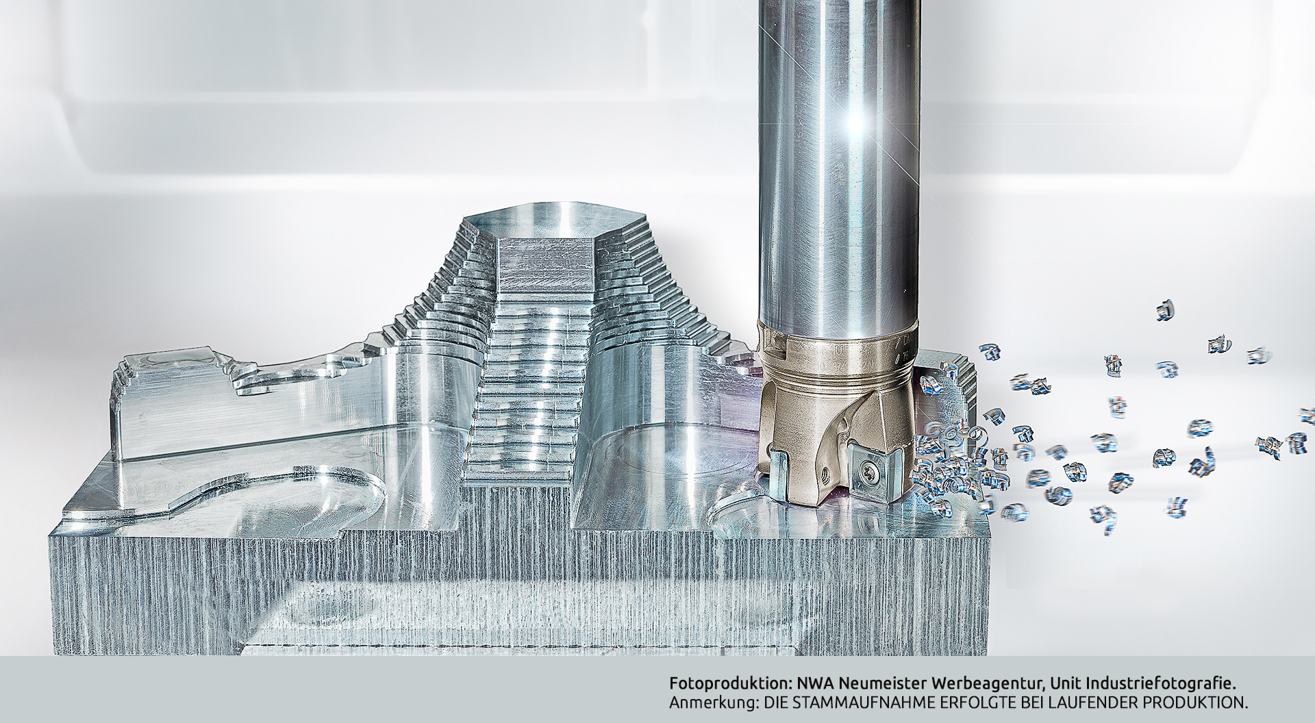 Plotpoint! Noch einmal das motive Endprodukt im Einsatz. Schnitt! Das Bild friert ein, unser CNC-Teil tritt zu uns nach vorn heraus und wird fixiert. Unser Off-Sprecher verkündet das Benefit bzw. unseren (Ihren) USP. Eine Headline und Ihre Logo runden die Schlusszene ab.