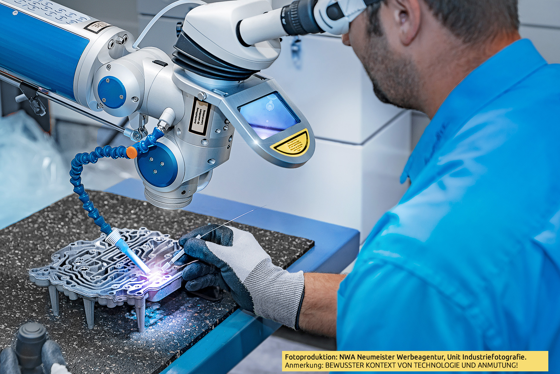 - Im oben genannten CNC Werbefilm haben wir Spannung durch eine schnell geschnittene, filmische Bildgeschichte mit geerdeten und offensiven Sequenzen aufgebaut und dabei der Marke und dem Werkstück ohne Worte schon Anmutung und Wertigkeit verliehen. Jetzt schalten wir noch zu unserer Bildgeschichte eine professionelle Off-Stimme (Sprecherstimme, die nur zu hören ist) und eine anmutungsstarke Backgroundmusik dazu und binden das finale Benefit (Dafür haben wir ja den Film produziert) mit einer Textzeile/Headline und Ihrem Log ab. Alle Sinne. Alle Beachtung. Fertig.